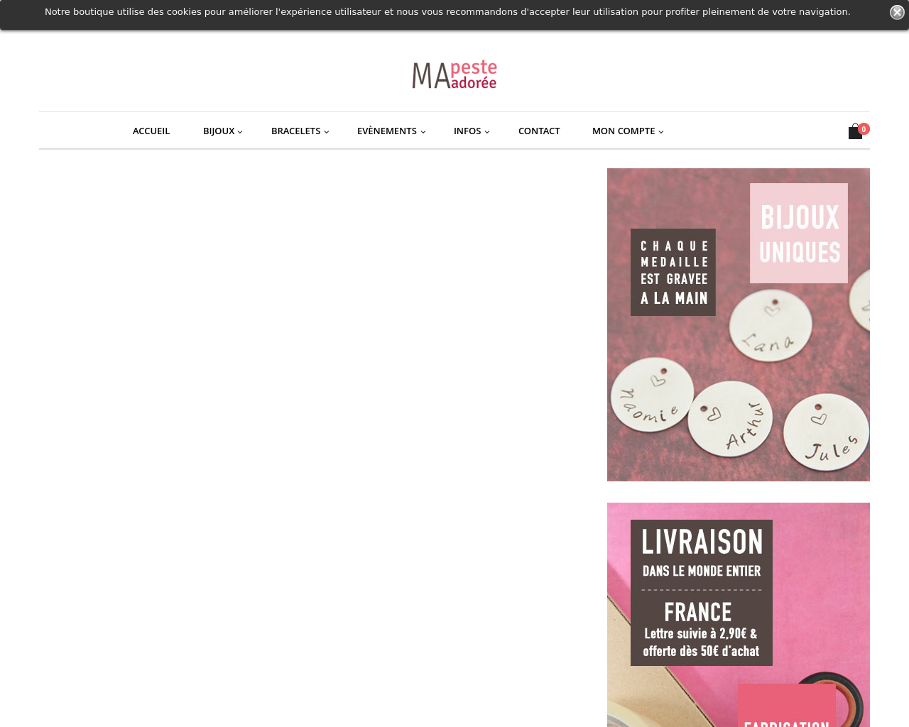 Votre bijou sera prêt une semaine après la confirmation de votre commande. Ma Peste Adorée assure la livraison partout en France et dans le monde entier ! Si vous avez des questions à poser, connectez-vous dans la rubrique « Foire aux Questions ».